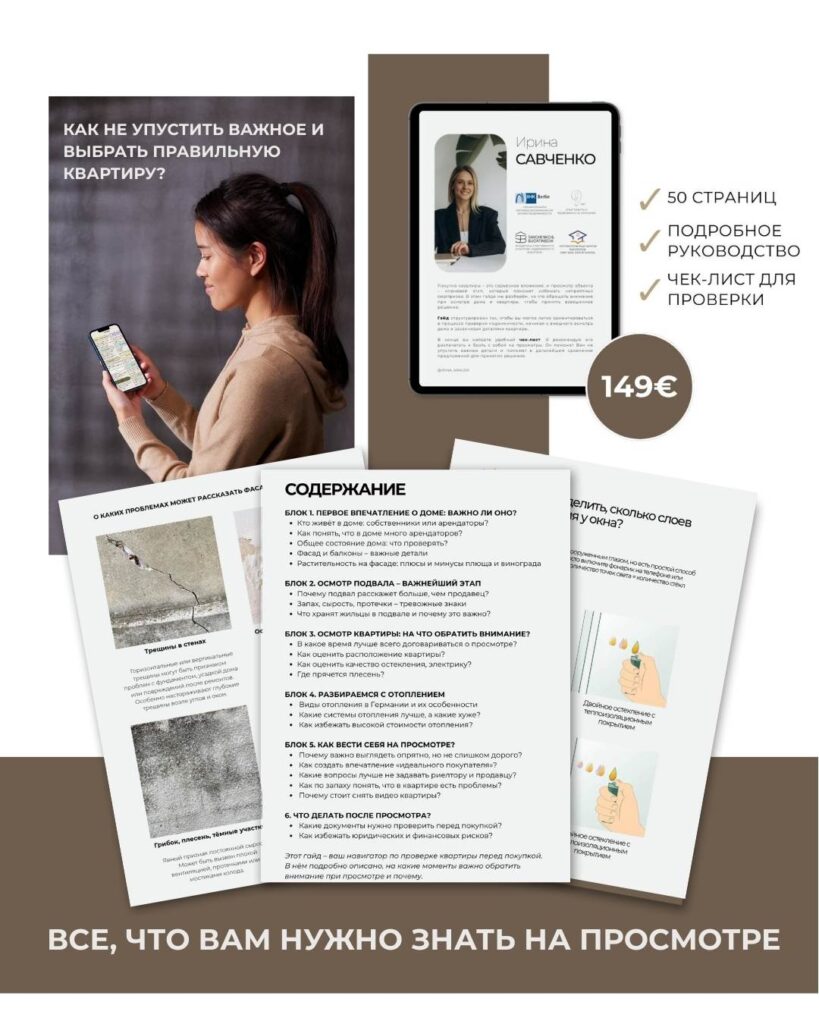 Откройте секреты, которые риелторы от вас скрывают. С этим пошаговым гайдом вы научитесь распознавать скрытые недостатки, оценивать недвижимость как профессионал и экономить тысячи евро при следующей покупке жилья.