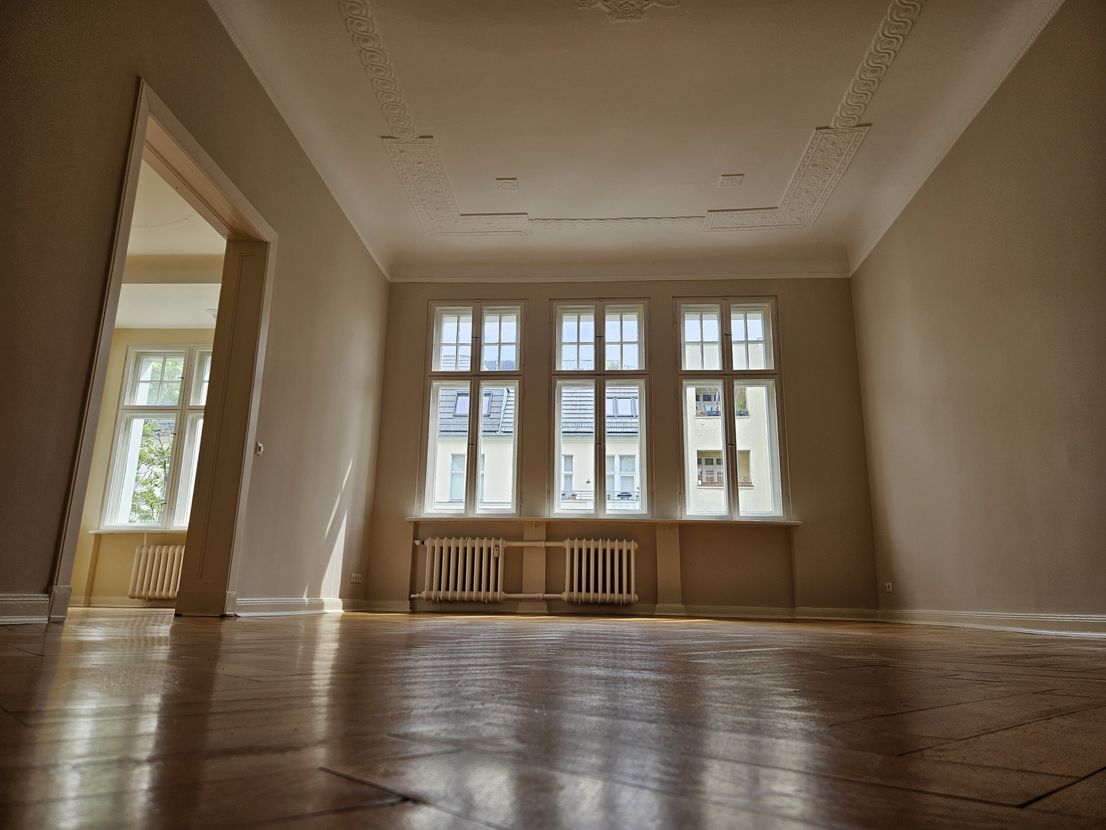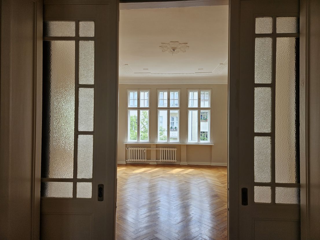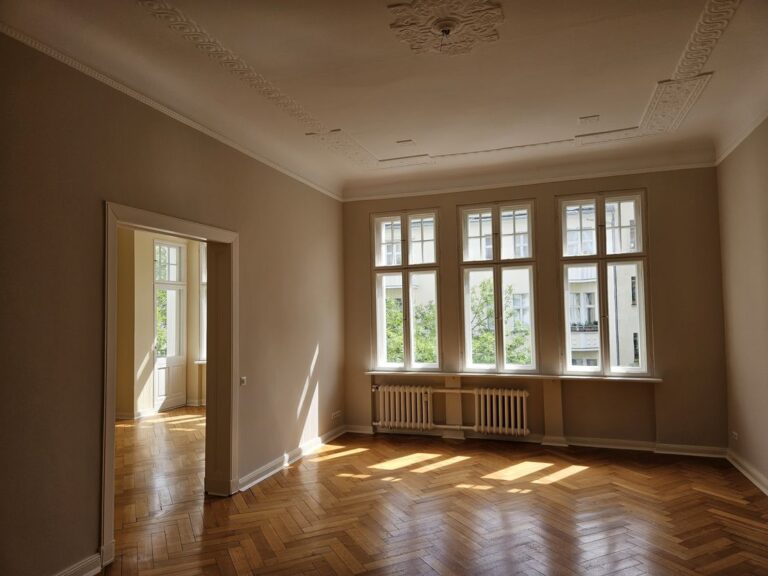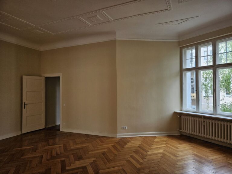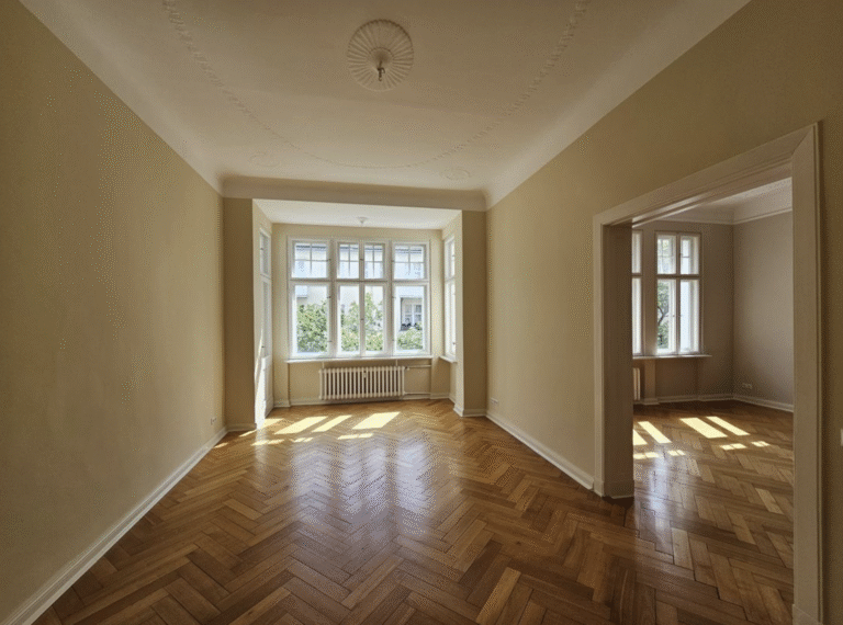 Просторная квартира с камином в стиле модерн расположена в самом сердце Schöneberg — в одном из самых престижных и атмосферных районов Берлина, живописном Баварском квартале (Bayerisches Viertel), входящем в состав Шёнеберга — уникальная по своему характеру и масштабу квартира площадью около 300 м². Этот светлый и внушительный по планировке объект занимает весь третий этаж здания, построенного в 1911 году в стиле югендштиль (немецкий модерн), и олицетворяет собой сочетание исторической эстетики и современного уровня жизни.